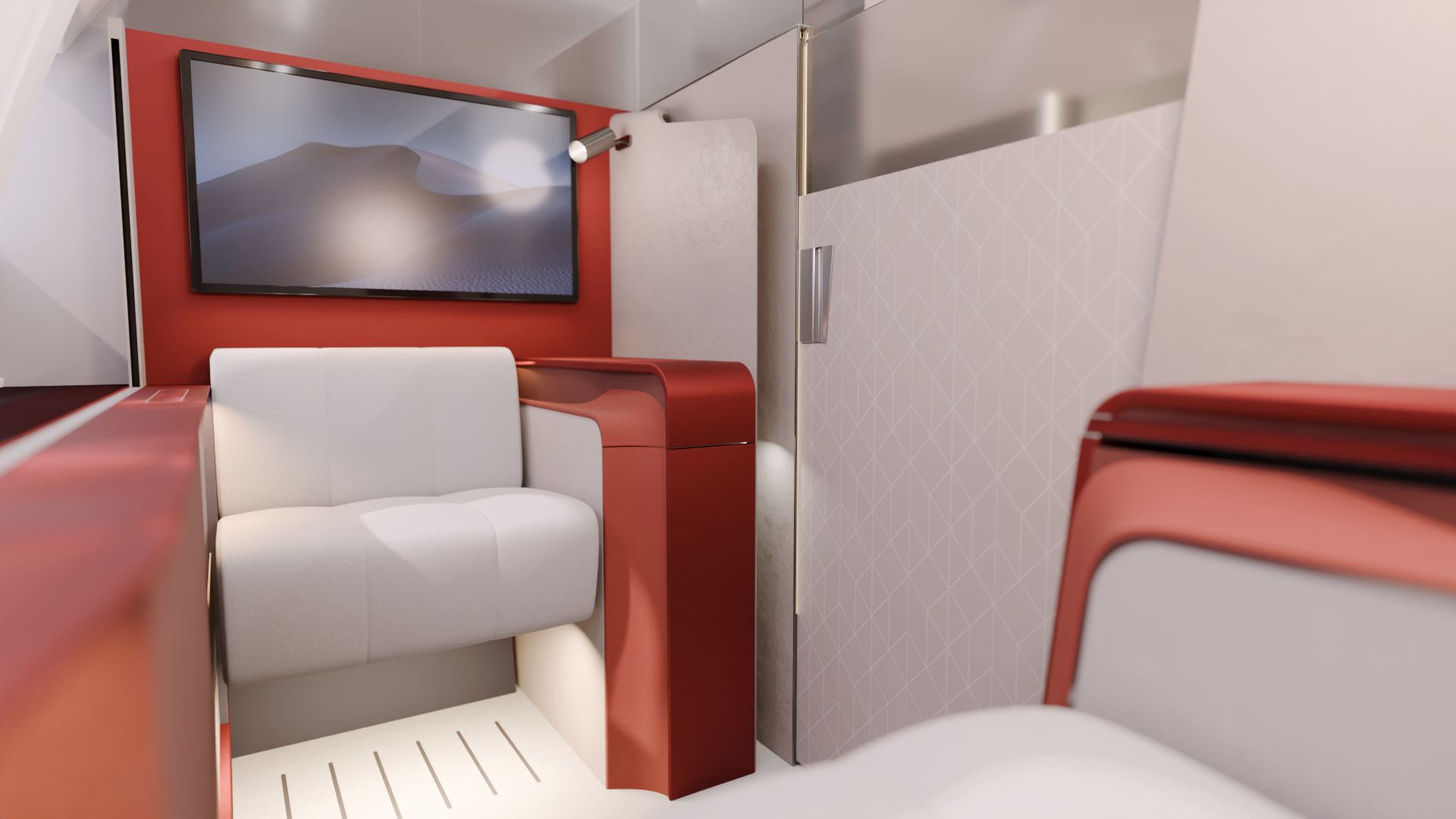 Developed with SOGECLAIR and supported by Tailwinds Consulting, the original VISTA solution is grounded in airline expectations, certification logic and operational reality. Extending this perspective across the entire cabin, what emerges is a realistic design direction for next‑generation Business Class cabins — one where intelligent mechanisms, thoughtful CMF and human‑centered design work together to redefine passenger experience.